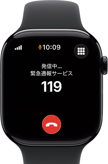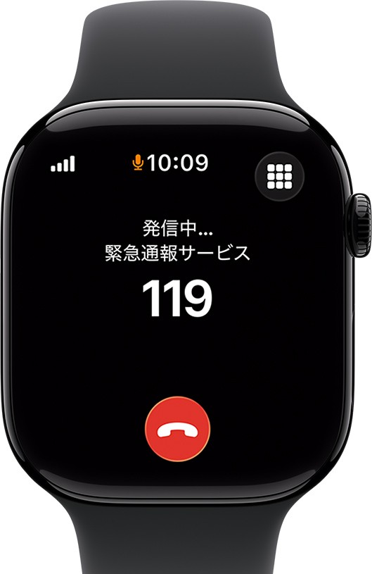 海外における緊急通報:海外における緊急通報機能を利用するには、Apple Watch Series 5(GPS + Cellularモデル)以降、Apple Watch SE(GPS + Cellularモデル)以降、またはApple Watch Ultra以降が必要です。 この機能を利用できる国と地域の一覧についてはapple.com/jp/watchos/feature-availabilityをご覧ください。