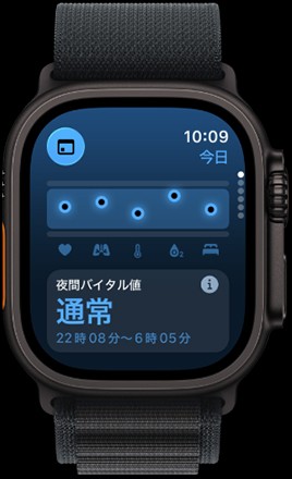皮膚温センサー:皮膚温センサー機能は医療での使用を目的とするものではありません。皮膚温センサーは、Apple Watch Series 8以降とすべてのApple Watch Ultraモデルでのみ利用できます。