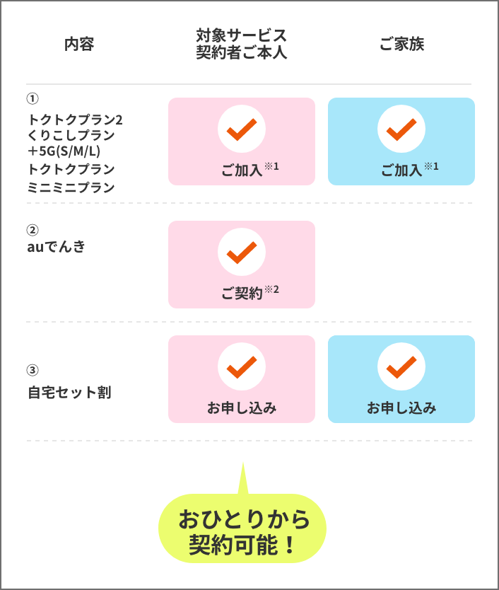 - ※UQ mobileとでんきコースのご契約者が同一性・同一住所の場合、お申込みできます。