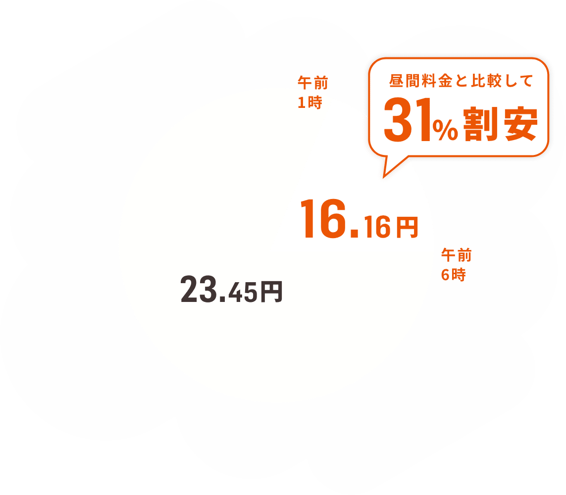 ※各エリアごとで深夜料金が割安な時間帯が異なりますのでご注意ください。