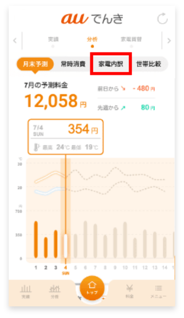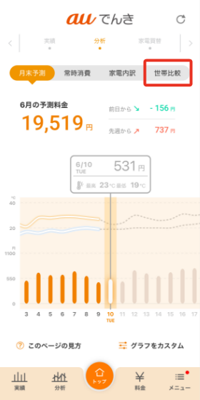 auでんきアプリなら使用量を詳しく比較できるよ!