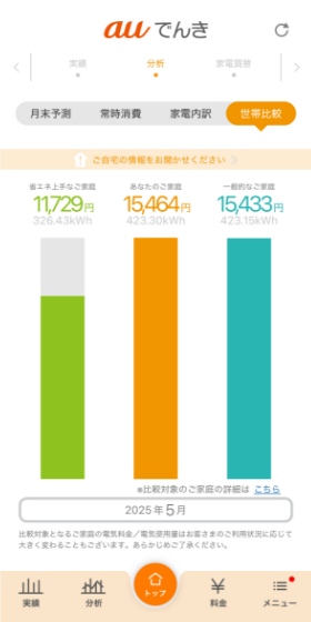 よく似たご家庭と電気料金を比較できます。あなたのご家庭の電気の使い方を見直すきっかけになります。