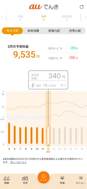 過去1年間の利用状況と気温から月末の電気料金を予測することができます。
