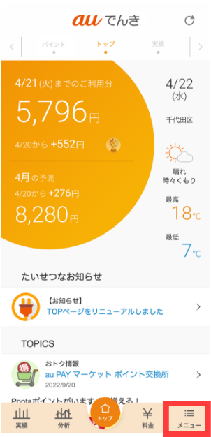 auでんきアプリの