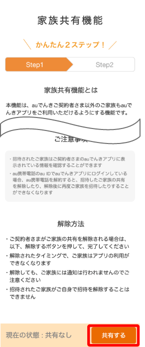 - 招待できるご家族はおひとり(1au ID)のみです。