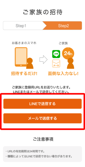 家族を招待する手順