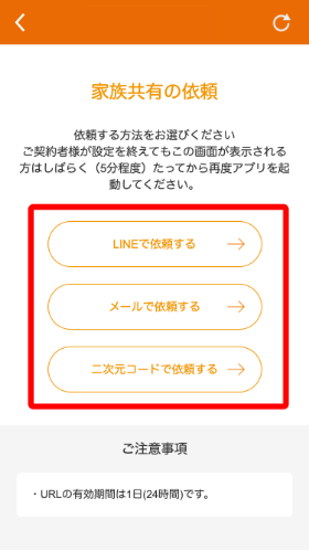 「家族共有機能」を依頼する手順