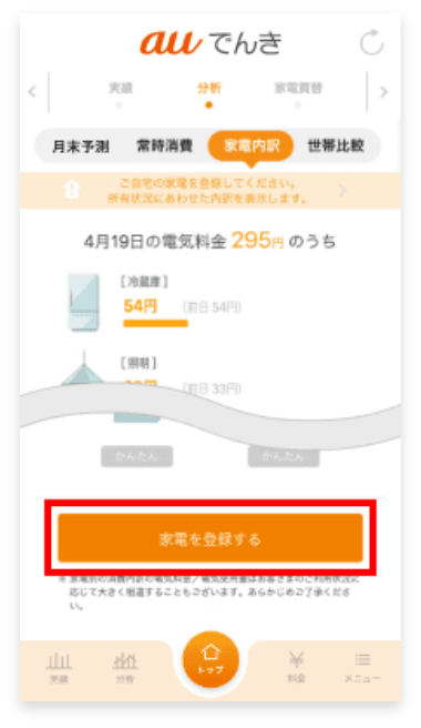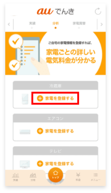 auでんきアプリに家電を登録する手順