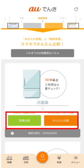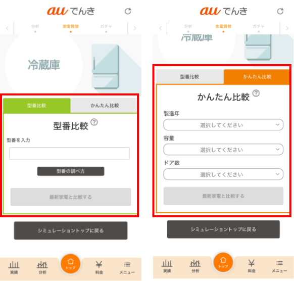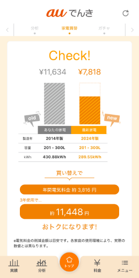 auでんきアプリなら最新の家電と今使っている家電を比較することができるよ!