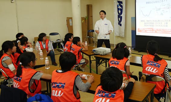 長期計画「KDDI GREEN PLAN」の実践を通じ、再生可能エネルギーへのシフトを強力に進め、2030年までにCO2排出量実質ゼロを目指し、ICTの活用によって社会の環境負荷を低減します。また、地域における環境保全活動、子ども向け環境教育などにも力を入れています。