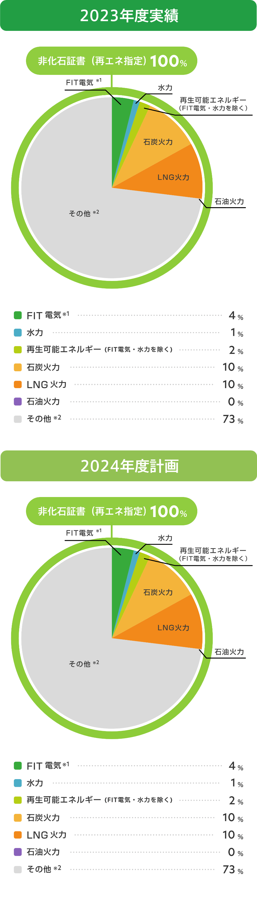 ※2:他社から調達している電気で発電所が特定できないものについては、「その他」としています。また、この電気には相対契約に基づく卸電力取引所を介した受渡しの電気を含みます。