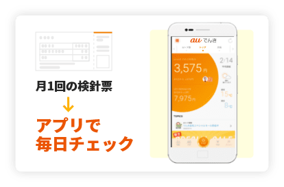 紙の検針票が無くなる代わりに、「auでんきアプリ」を使って毎日の電気料金をチェックできるようになります。