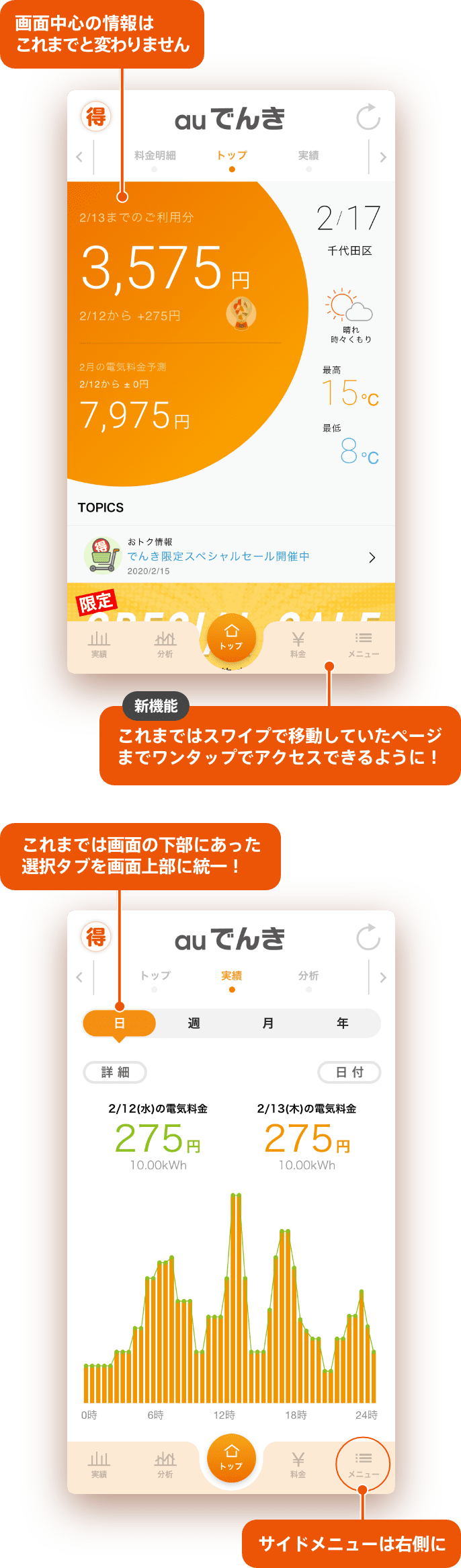 auでんきアプリは、お客さまの快適なでんきライフのためにこれからも進化し続けます。今後のリニューアル情報も随時お知らせしていきますので、お楽しみに!