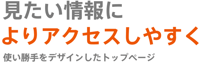 大事な情報にワンタップで 見たい情報によりアクセスしやすく 使い勝手をデザインしたトップページ