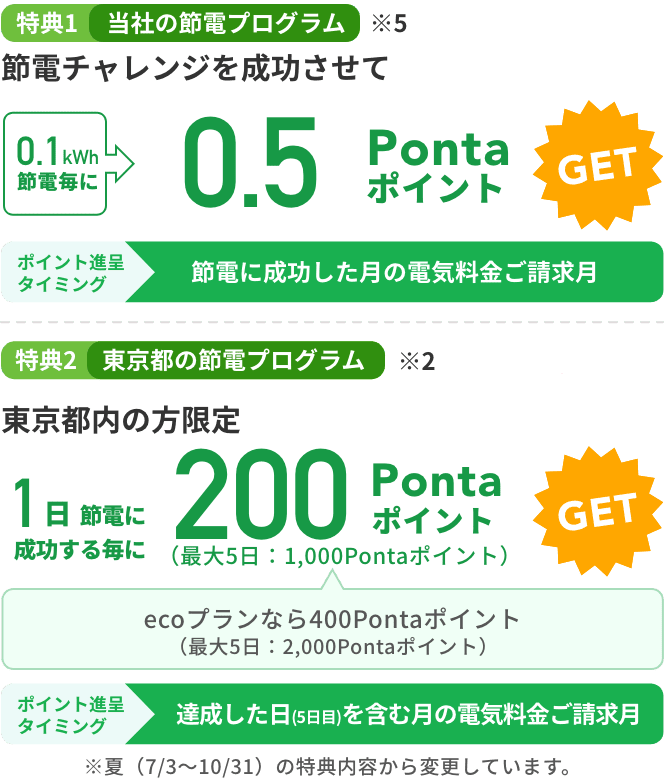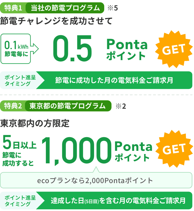 ※5:節電量0.1kWh毎に0.5Pontaポイント(小数以下切り上げ)