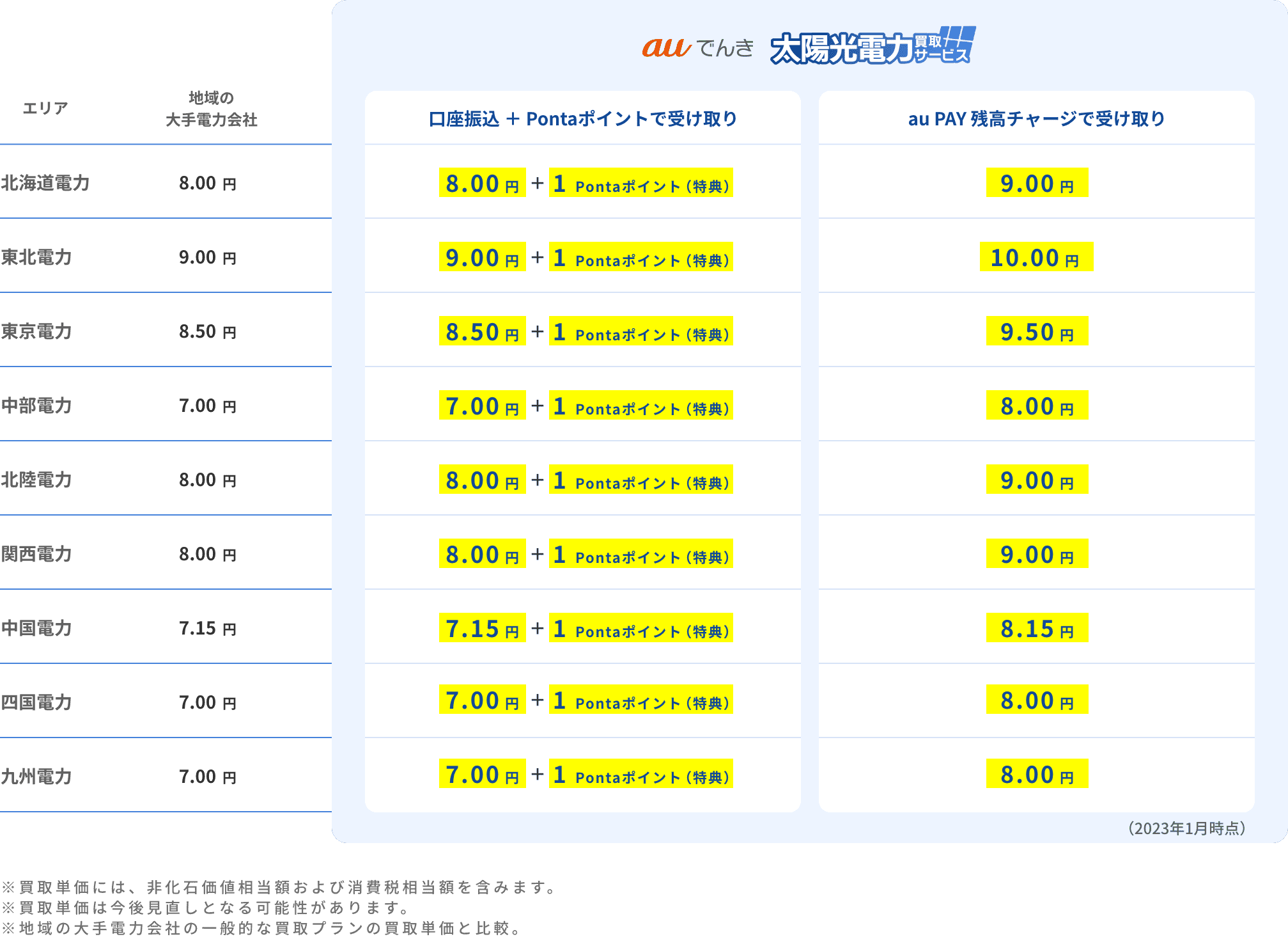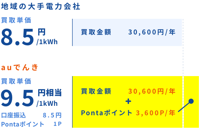 - ※地域の大手電力会社の一般的な買取プランの買取単価と比較。
