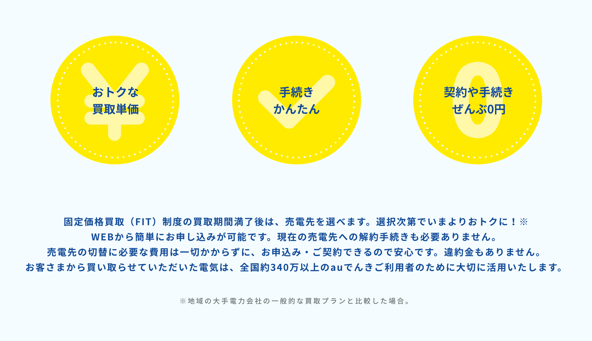 - ・固定価格買取(FIT)制度の買取期間満了を迎えた方、または、これから買取期間満了を迎える方(買取期間満了日の6か月前からお申し込みいただけます)