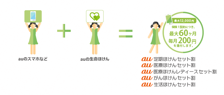 対象となる通信契約をお持ちのauユーザー(注1)が、保険料還付金付き「auの生命ほけん」に加入すると、最大60カ月、保険1契約につき毎月200円が保険料還付金としてauの通信料金から差し引かれます。