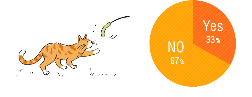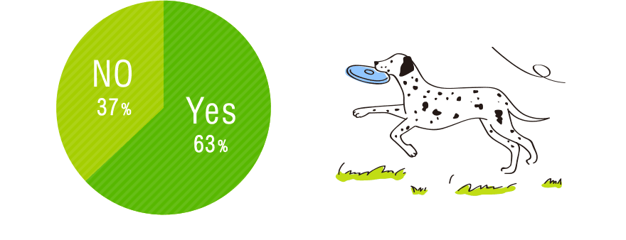 ペットの運動不足を気にかけている方は、愛犬では63.0%、愛猫では33.0%という結果となり、3割の差が出ました。愛犬の場合、朝晩など散歩を日課としている方が多く、飼い主のみなさまの運動不足解消にも役に立っているようです。一方、愛猫の場合、散歩に連れ出すことは少ないものの、自宅の中でキャットタワーや段差などを作り、運動不足にならないよう工夫している方が多いようです。