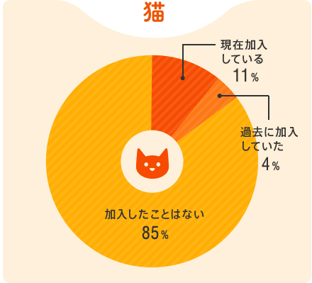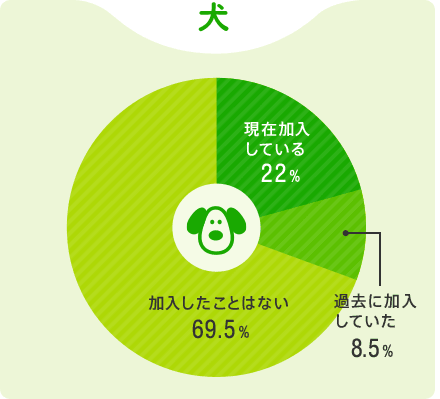 ここまでのアンケート結果では、食事やお手入れ、運動への配慮など、多くの方が日常的にペットの健康に気を付けていることがわかりました。しかし、毎日、充分注意していても、時に思いがけないケガや体調不良で、想定外の治療や入院が必要となることも。いざ、動物病院にかかってみたら高額の費用が発生しびっくり、とならないように、もしものときのために、ペットの医療保険に加入しておくと安心でしょう。そこで、今回アンケートにご協力いただいたみなさんに、ペット保険の加入状況についてもうかがってみました。