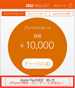 - au WALLET プリペイドカードもしくはau WALLET クレジットカードをApple Payに設定