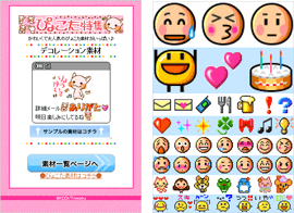 auの携帯に最初から入っている「au絵文字」のバリエーションをデコレ素材として提供!