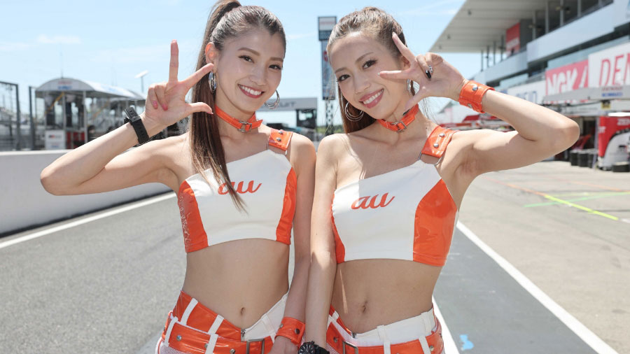 日本でもっとも人気があるレースシリーズである「SUPER GT」のGT500クラスで、au(KDDI)がスポンサードしている「36号車 au TOM'S GR Supra」のサーキットクイーンをしているのが、央川かこさん、辻門アネラさんのお2人。