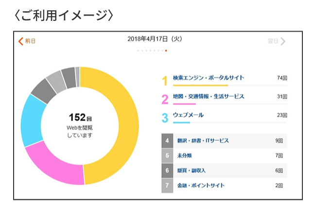 7日前までの、お子さまのインターネットの利用状況を確認することができます。