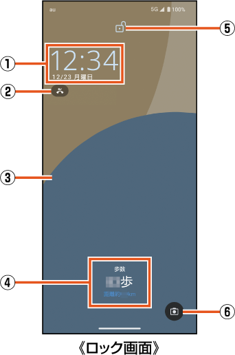 「ロック画面」の「ロック画面にテキストを追加」を設定している場合は、ロック画面に設定したテキストが表示されます。 |