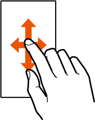 画面に軽く触れたまま、目的の方向や位置へなぞります。 目的の方向へなぞって画面のスクロールやページの切り替えを行います。また、音量や明るさの調整時にバーの操作に使用します(スライド/スワイプ)。 項目やアイコンを目的の位置まで移動します(ドラッグ)。 |