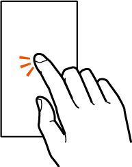 画面に軽く触れて、すぐに指を離します。また、2回連続で同じ位置をタップする操作をダブルタップと呼びます。 画面に表示された項目やアイコンを選択します。静止画表示中などにダブルタップすると、画面を拡大/縮小します。 |