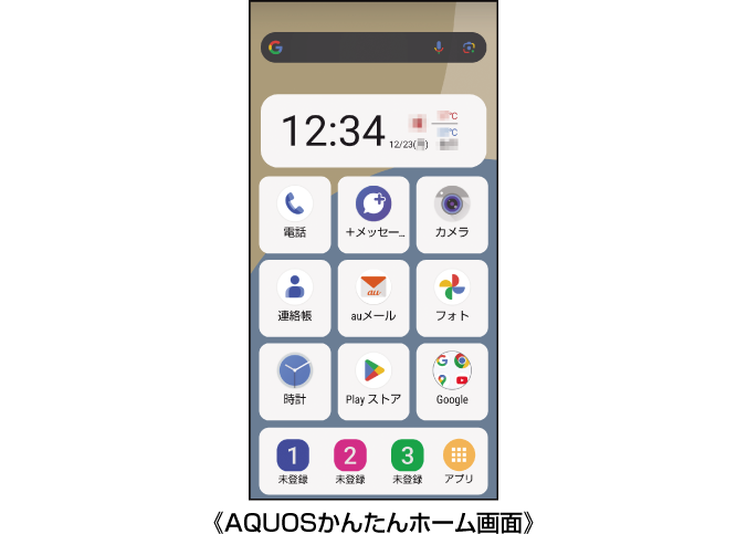 AQUOSかんたんホームは、ホーム画面(デスクトップシート)とアプリ一覧画面で構成されたホームアプリです。