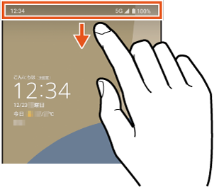 ホーム画面では、ステータスバー以外の位置から下にスライドしてもお知らせパネルを表示できます。