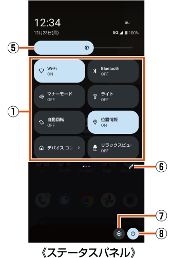 ステータスパネルでは、左右にフリックすると、ページを切り替えることができます。