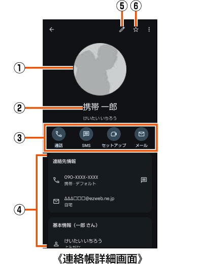 連絡先詳細画面の見かた