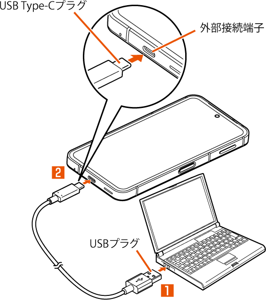 パソコンが完全に起動している状態で、USB Type-Cケーブル(市販品)をパソコンのUSBポートに接続