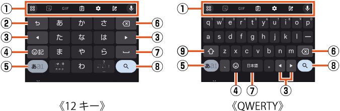 ここでは、「12 キー」と「QWERTY」の基本的な操作について説明します。操作方法などは、Gboardのアップデートにより、本書の内容から変更されることがあります。