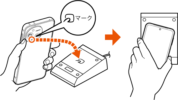 マークはリーダー/ライターの中心に平行になるようにかざしてください。
