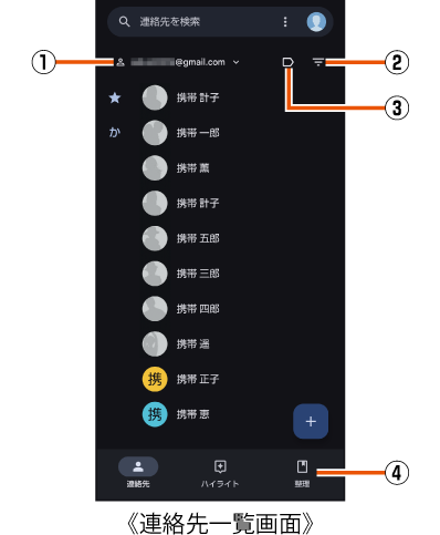 連絡先が登録されているアカウントを変更したり、表示のカスタマイズができます。