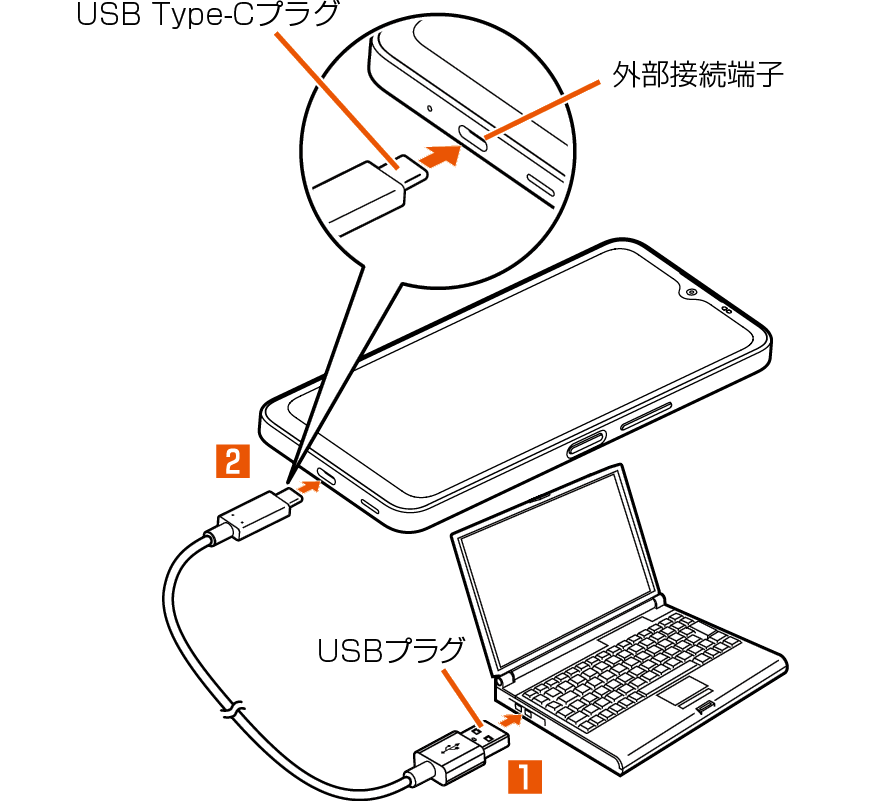 パソコンが完全に起動している状態で、USB Type-Cケーブル(市販品)をパソコンのUSBポートに接続