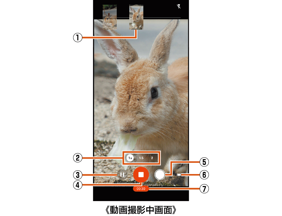 」をタップすると、動画の撮影を一時停止できます。撮影を再開する場合は「
