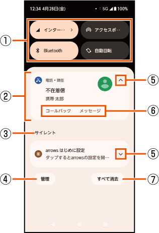 タップして通知を開くと、表示しきれない通知内容や操作メニューを表示できます。ただし、通知によっては表示されない場合があります。