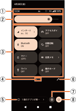 通知パネルを下にスライドしたり、ロック画面でステータスバーを下にスライドしたりしても、パネルスイッチを表示できます。