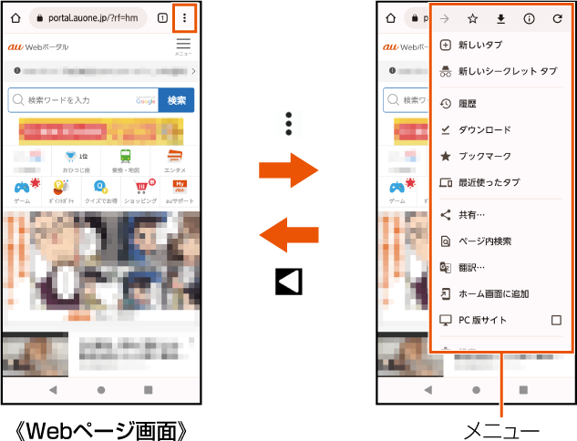 アプリ/機能によっては、メニューアイコンの色や形、メニューの表示方法が異なる場合があります。 |
