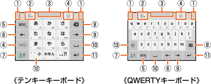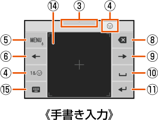 ※1 上にフリックして引用アプリを起動します。右にフリックすると郵便番号を利用した住所入力ができます。ロングタッチすると音声入力を起動します。
