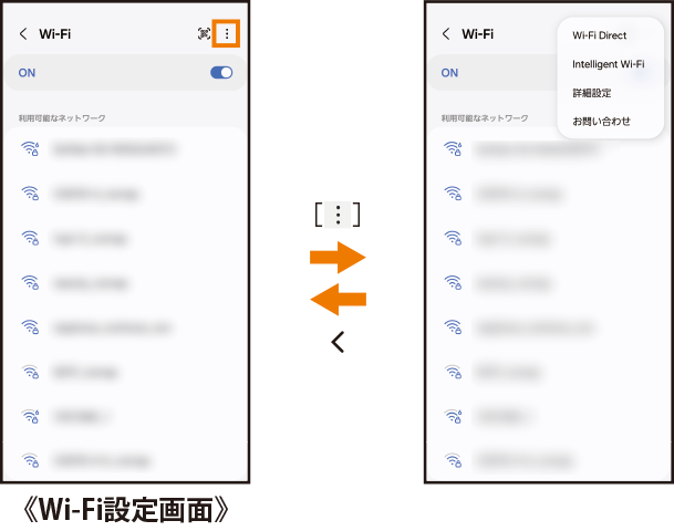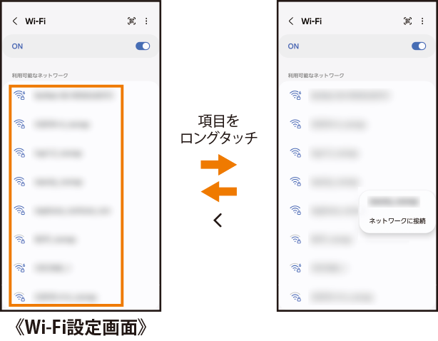 例:Wi-Fi設定画面で項目をロングタッチする場合