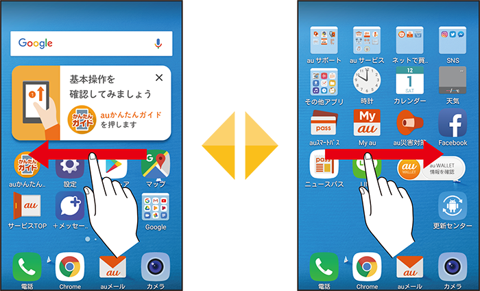 お買い上げ時のホーム画面は「auベーシックホーム」に設定されています。