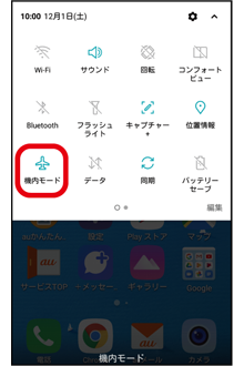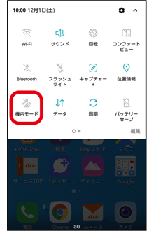 機内モードを設定するとすべての無線接続と通話機能が無効になります。