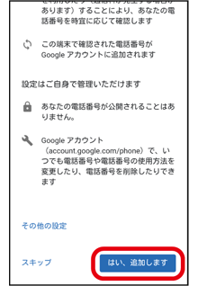 電話番号追加についての注意事項を確認し、「はい、追加します」をタップ