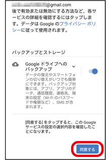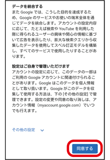 Googleのプライバシーポリシーと利用規約を確認し、「同意する」をタップ